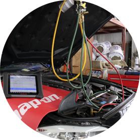 株式会社CARAS(カルアス)ではカーエアコン修理専門の設備が充実しています。各機能の作動チェックを行ったり、ガス漏れの確認、水圧テストなど徹底した故障探求を行います。